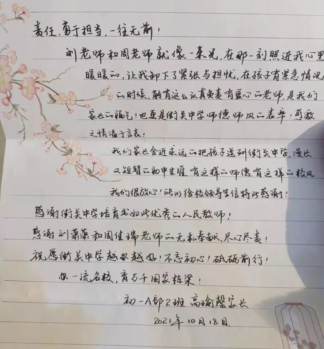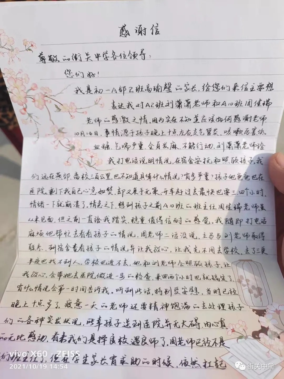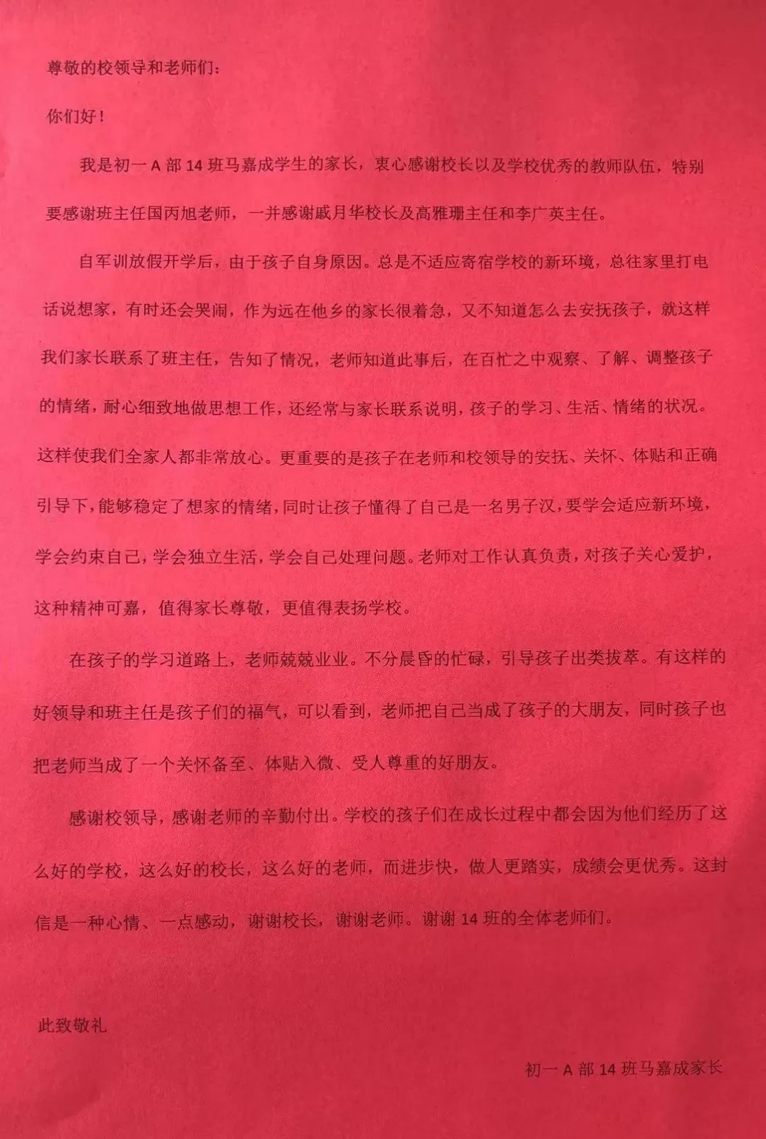 第三視角一腔熱血寫(xiě)春秋,三尺講臺(tái)定乾坤。近日,我校初中部學(xué)生家長(zhǎng)為老師贈(zèng)送了錦旗和感謝信,感謝敬愛(ài)的老師們。“用心呵護(hù),盡職盡責(zé)”、“關(guān)懷備至母愛(ài)如子,諄諄教誨育才有方”、“教授一絲不茍,關(guān)懷無(wú)微不至”……一面面錦旗表達(dá)著家長(zhǎng)對(duì)學(xué)校老師的辛勤付出和對(duì)孩子們的精心培育的感激之情。