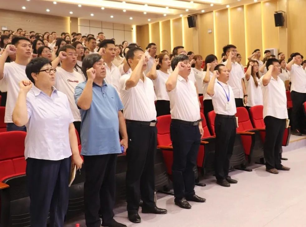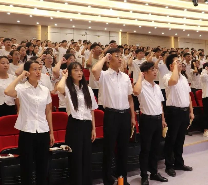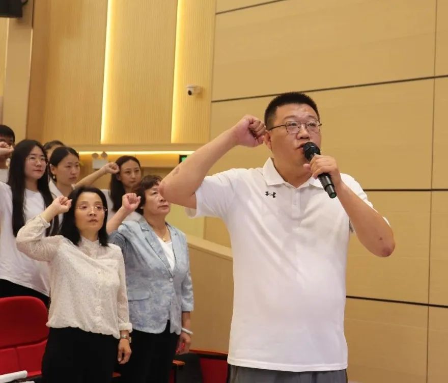 會(huì)議在雄壯的國(guó)歌聲中拉開帷幕。藝術(shù)部張力主任帶領(lǐng)全體教師高舉右拳莊嚴(yán)宣誓《衡水街關(guān)中學(xué)教師誓詞》和《衡水街關(guān)中學(xué)“八個(gè)不”》:我是光榮的街中教師,我要恪守追求卓越的校訓(xùn),志存高遠(yuǎn)……;1、不能讓工作在我這兒拖延,2、不能讓工作在我這兒失誤,3、不能讓形象在我這兒受損……鏗鏘的誓言擲地有聲,詮釋著全校教職工堅(jiān)守教育初心,勇?lián)耸姑某嘧又摹?/span>