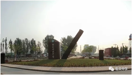走過鵬程路來到學(xué)校大門,正中間黃色墻體,方形的墻體上做三角形造型設(shè)計,上書“衡水街關(guān)中學(xué)”,亮麗而莊嚴(yán),預(yù)示衡水街關(guān)中學(xué)的銳意進(jìn)取精神。