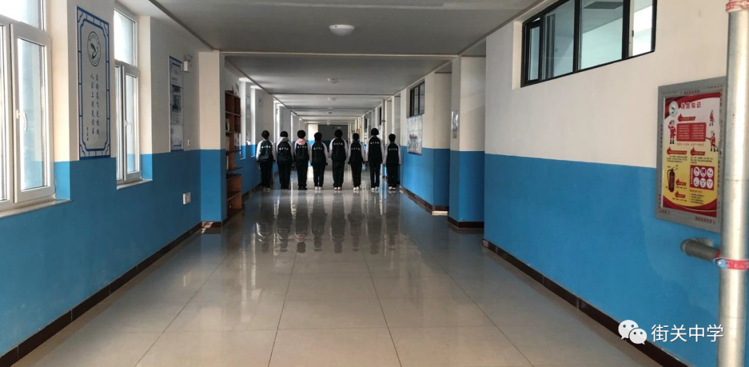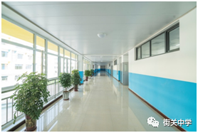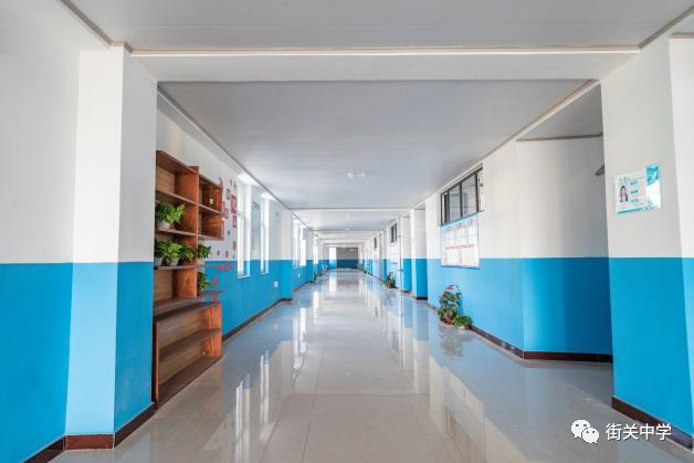 進(jìn)入教學(xué)樓大廳,約 260 平方米,八間辦公室大小的面積,街關(guān)中學(xué)五大理 念懸于墻上,赫然入目;教風(fēng)、學(xué)風(fēng)列于大廳中間立柱之上,彰顯了街中的教育 教學(xué)理念。由大廳進(jìn)入教學(xué)樓,寬敞的走廊,高矮綠植點(diǎn)綴,走廊寬 4 米,可容 納八名同學(xué)并排站立。