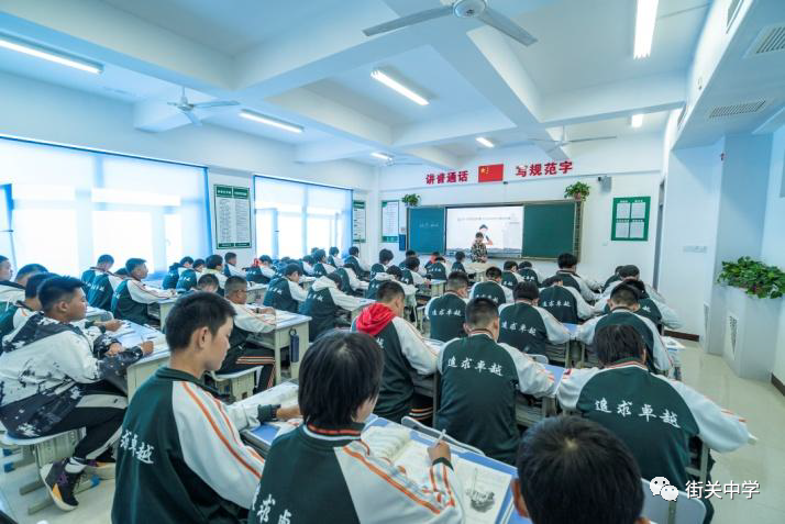 走進(jìn)教室,桌椅整齊,窗明幾亮,面積 60 平米,墻壁懸掛勵(lì)志名言、學(xué)生 們自己動(dòng)手制作的各種裝飾,《中學(xué)生守則》、《衡水街關(guān)中學(xué)中學(xué)生誓詞》懸掛 在醒目位置,配備中央空調(diào)和地暖,地面鑲嵌防滑瓷磚;每個(gè)教室配備多媒體電教設(shè)備,裝載智能教學(xué)軟件,與學(xué)校局域網(wǎng)連接,實(shí)現(xiàn)資源共享,通過(guò)多媒體電 教設(shè)備,改變了傳統(tǒng)的一塊黑板、一個(gè)粉筆的教學(xué)模式,老師們可以根據(jù)授課內(nèi) 容制成課件,通過(guò)多媒體電教設(shè)備進(jìn)行演示,既生動(dòng)又形象,使課堂不再枯燥, 學(xué)生領(lǐng)會(huì)知識(shí)更全面、更牢固;學(xué)生桌椅全部為單人單座,凳子高 40 厘米,凳 子面為 40 厘米見(jiàn)方正方形,桌子高度 75 厘米,桌椅設(shè)計(jì)充分考慮青少年的身高與坐姿的舒適度,使學(xué)生在長(zhǎng)時(shí)間坐姿的狀態(tài)下不易疲勞,增加了舒服感;學(xué)生 課桌分上下兩層,上層為抽屜,下層為隔板,方便學(xué)生存放書(shū)籍。每班 50 人, 避免學(xué)生擁擠,確保坐在每個(gè)位置上的學(xué)生都能清晰的聽(tīng)到老師的講課。教室屋 頂“井”字梁設(shè)計(jì),寬大的“井”字梁消除了教室里的回音,確保教師講課的聲 音清晰的傳到學(xué)生耳中。每個(gè)教室配備 11 個(gè)日光燈,形成無(wú)影燈的效果,無(wú)論 學(xué)生坐在哪個(gè)位置,都不會(huì)出現(xiàn)陰影狀況,避免了燈光照射的死角。教學(xué)樓的 U 字型設(shè)計(jì),保證了每個(gè)教室都處于陽(yáng)面,教室處于陽(yáng)面一側(cè)兩個(gè)明亮的玻璃窗, 保證了教室的足夠的采光度。