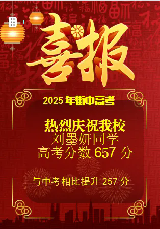 校園新聞“春風(fēng)得意馬蹄疾,一日看盡長安花?!笔⑾臅r節(jié),衡水街關(guān)中學(xué)高考捷報如繁花綻放,以斐然成績書寫教育華章,為莘莘學(xué)子的寒窗苦讀畫上圓滿句點,也為學(xué)校發(fā)展歷程鐫刻下璀璨印記!