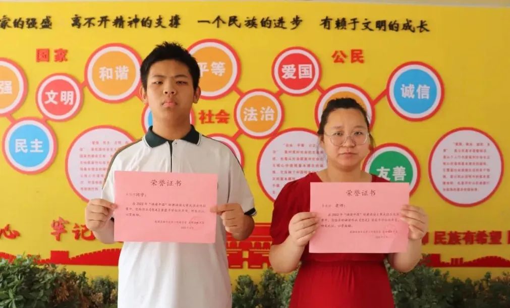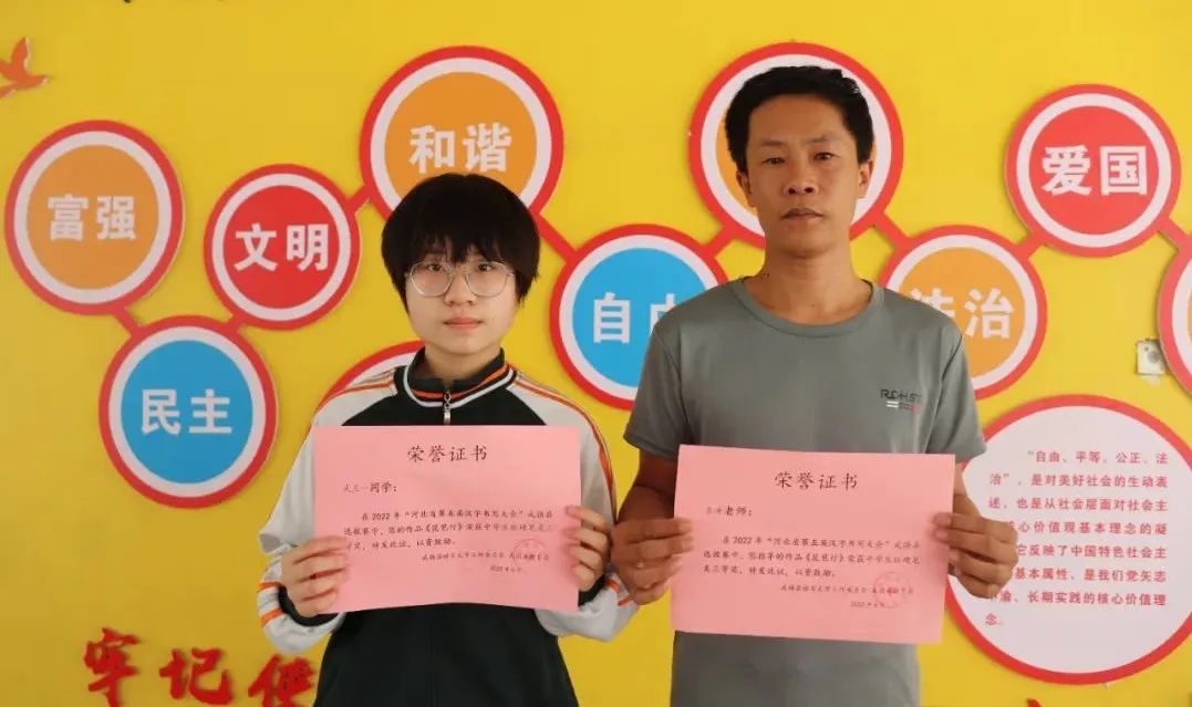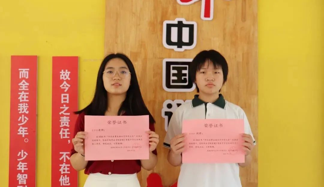 七年級B6班劉雨軒榮獲武強縣2022年漢字(硬筆)大賽中學組三等獎、指導老師袁羅青榮獲硬筆類指導教師三等獎;八年級4班武蘭一榮獲武強縣2022年漢字(硬筆)大賽中學組三等獎,指導老師李沖榮獲硬筆類指導教師三等獎。