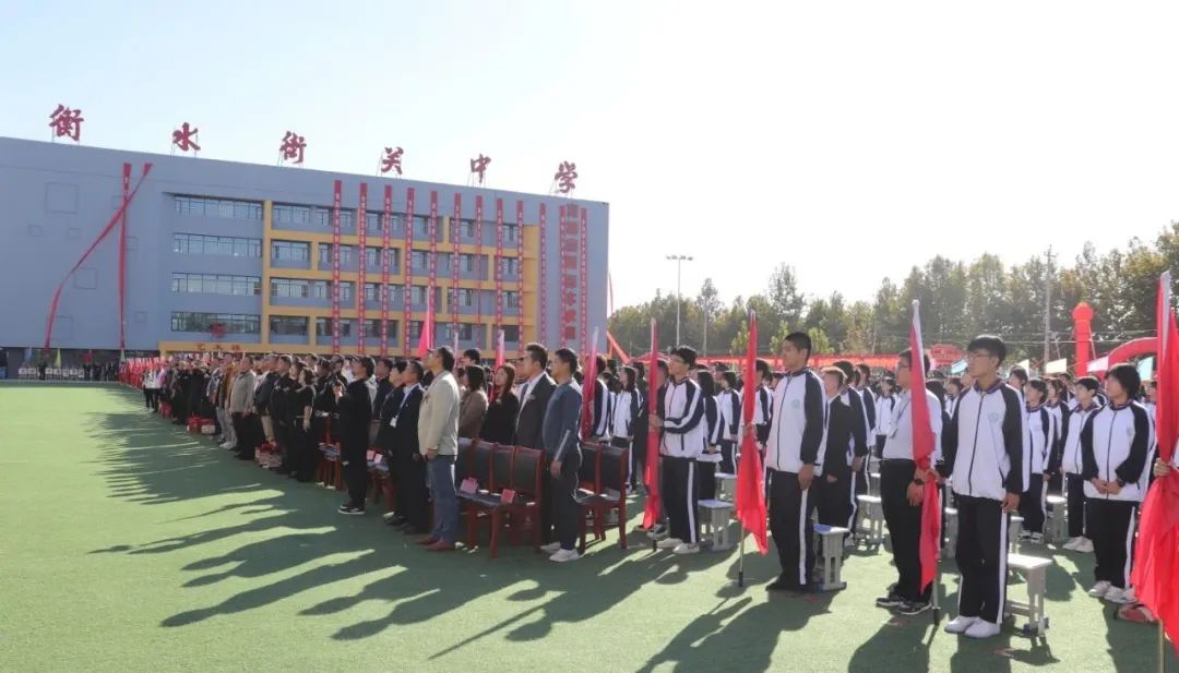 儀式伊始,全體與會(huì)人員肅立,升國(guó)旗,奏唱國(guó)歌,衡水街關(guān)中學(xué)建校三周年暨首屆校園文化藝術(shù)節(jié)正式拉開(kāi)序幕。