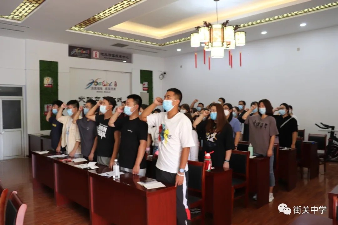 張力主任帶領(lǐng)全體教師集體宣誓 《衡水街關(guān)中學“八個不”》 。