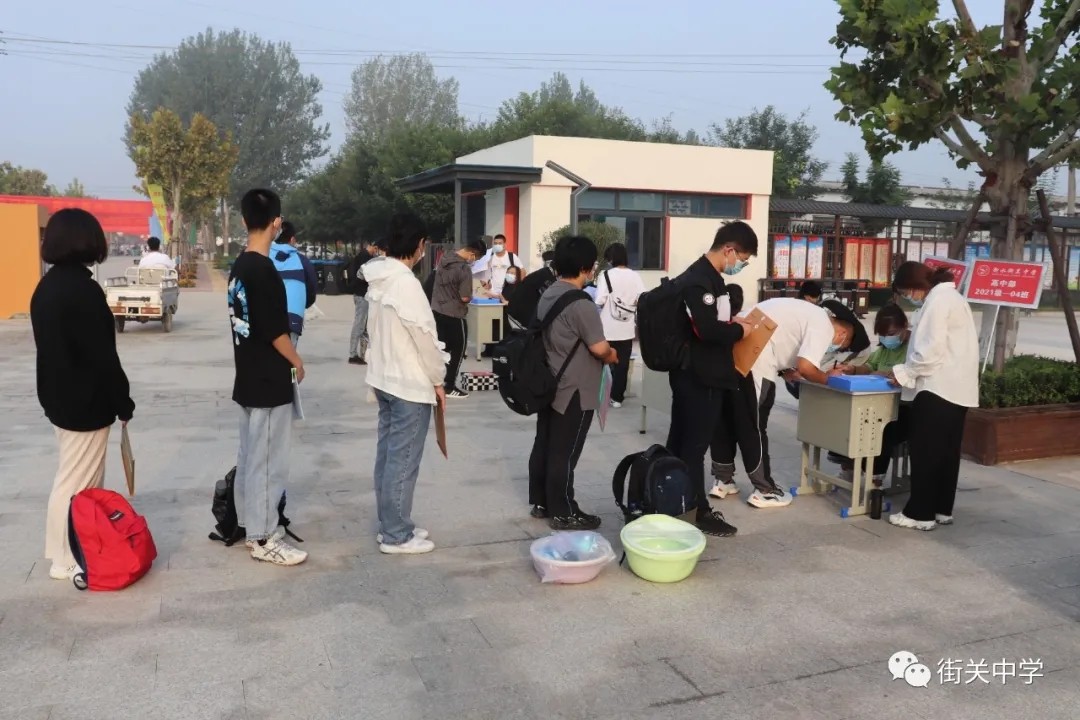 街中的校園再次喧鬧起來(lái)迎來(lái)了新一屆的街中萌新高一萌新們?cè)诶蠋煹囊龑?dǎo)下經(jīng)過(guò)層層“質(zhì)檢”,健康入校真正踏入期待已久的街中校園