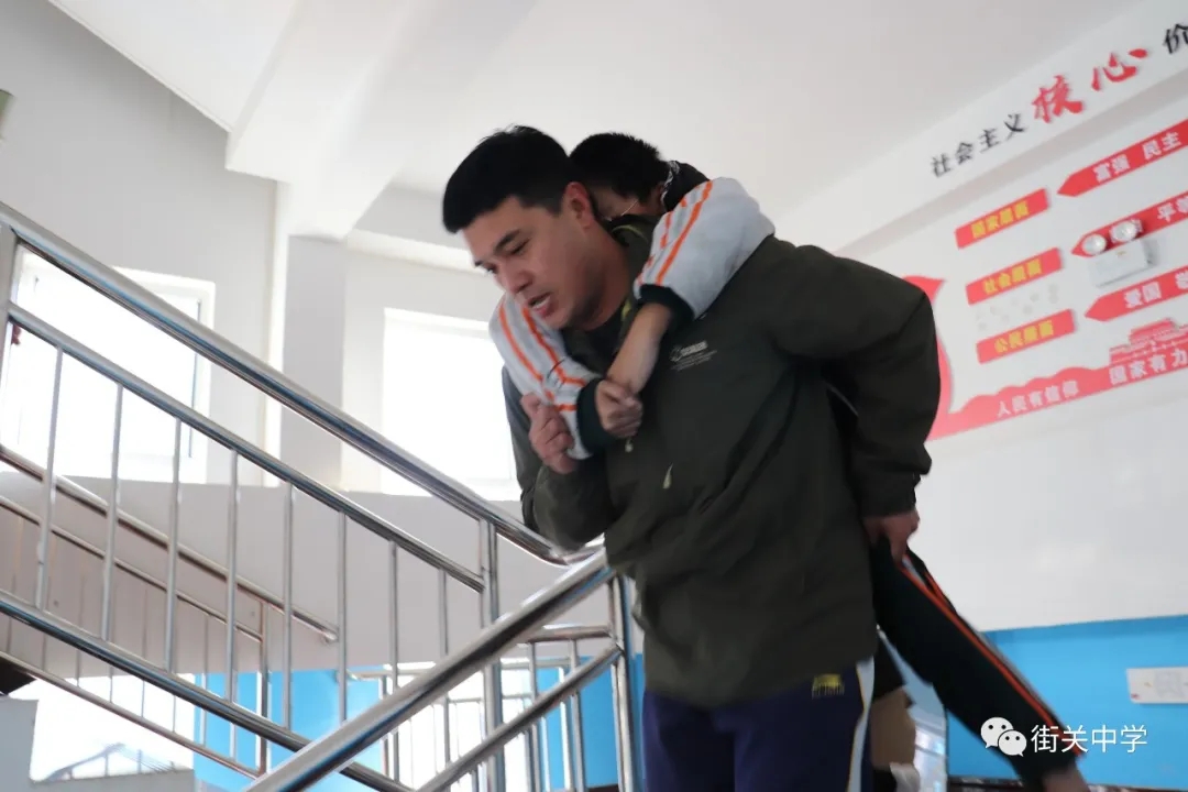 隨著警報(bào)聲起,各班學(xué)生在老師的指導(dǎo)下迅速?gòu)慕淌页冯x,掩鼻、躬身,有秩序地從疏散通道離開(kāi)教學(xué)樓,撤離到操場(chǎng)上,整個(gè)疏散過(guò)程快且安靜、有序。對(duì)于意外被困人員,由老師組成的緊急救援小組協(xié)助安全撤離。