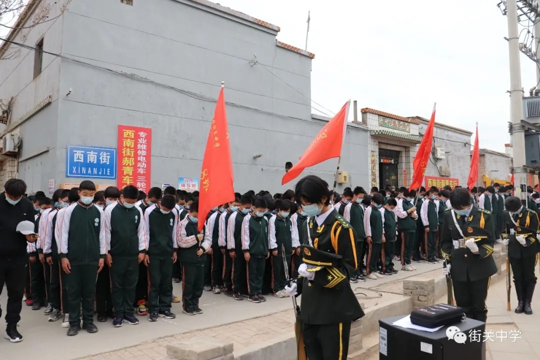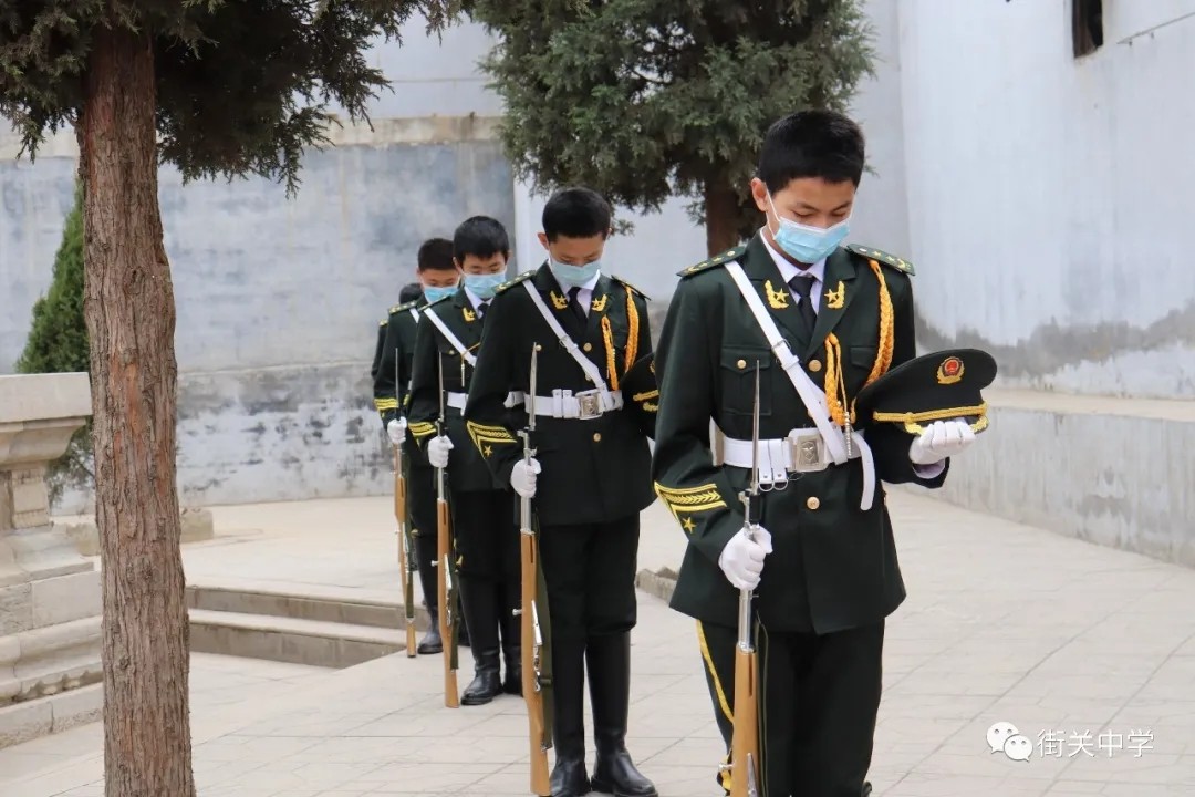校領(lǐng)導(dǎo)和國旗班為革命先烈敬獻(xiàn)花籃