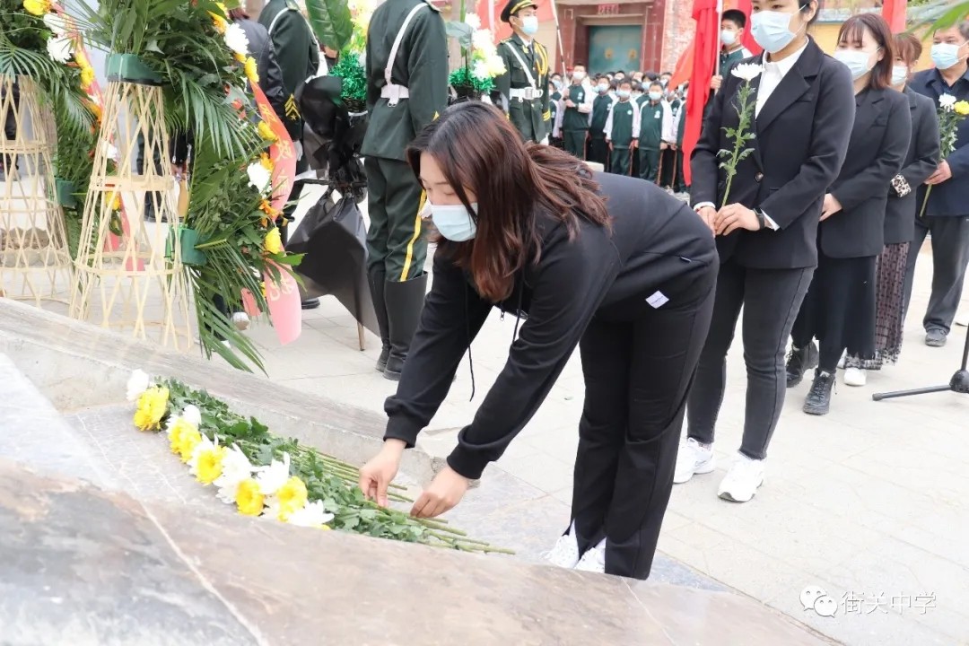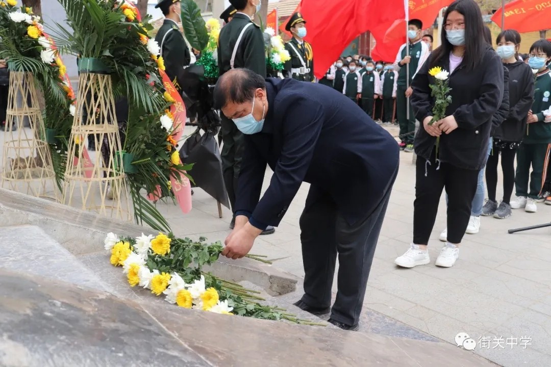 校領(lǐng)導(dǎo)、老師及學(xué)生代表為革命先烈敬獻(xiàn)鮮花