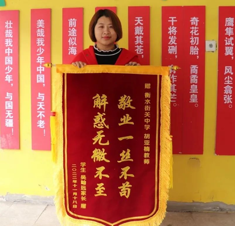 一面錦旗,一份信任;一面錦旗,一份榮譽(yù)。近日,我校初二年級(jí)16班班主任胡亞楠老師收到了來自本班學(xué)生吳岫遠(yuǎn)家長(zhǎng)寄來的一面錦旗。