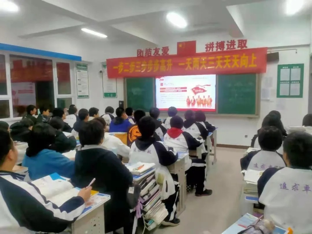 課堂上,同學們認真地聆聽老師聲情并茂的講解,了解百年黨史和革命先烈的偉大事跡,學習黨的輝煌歷史和奮斗征程,贊嘆革命先輩不畏艱險,為革命事業(yè)奮不顧身的革命精神。