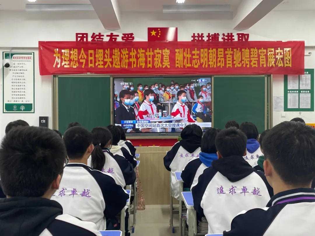 學生課堂"飛天夢永不失重,科學夢張力無限。“神舟十三號成功發(fā)射。此次,由翟志剛、王亞平、葉光富組成的新“太空出差三人組”變身“太空教師”在中國空間戰(zhàn)精彩開講。12月9日,街關(guān)中學高中部師生一起在線觀看《天宮課堂》*課。感受祖國的魅力,探索航天的奧秘。
