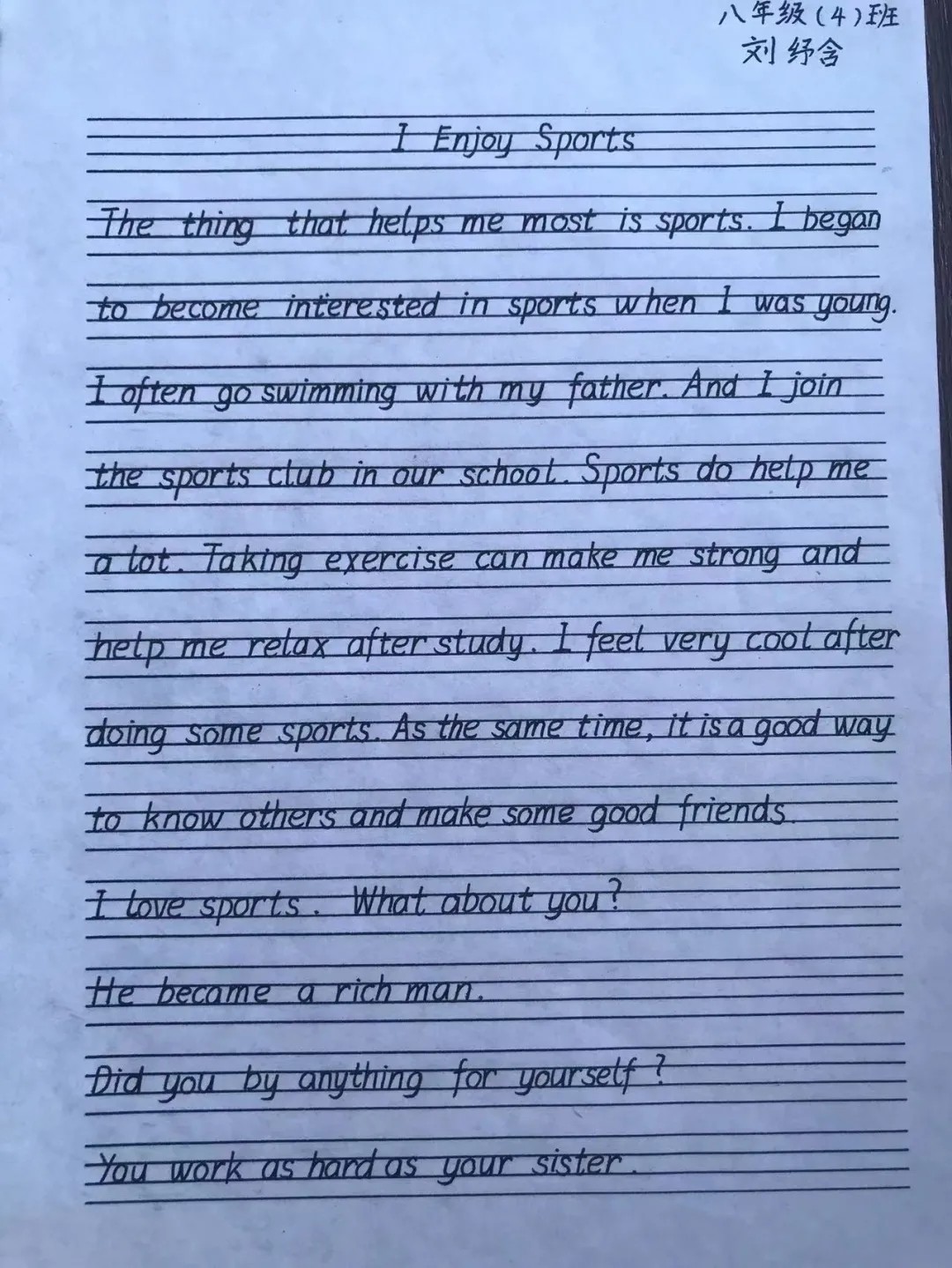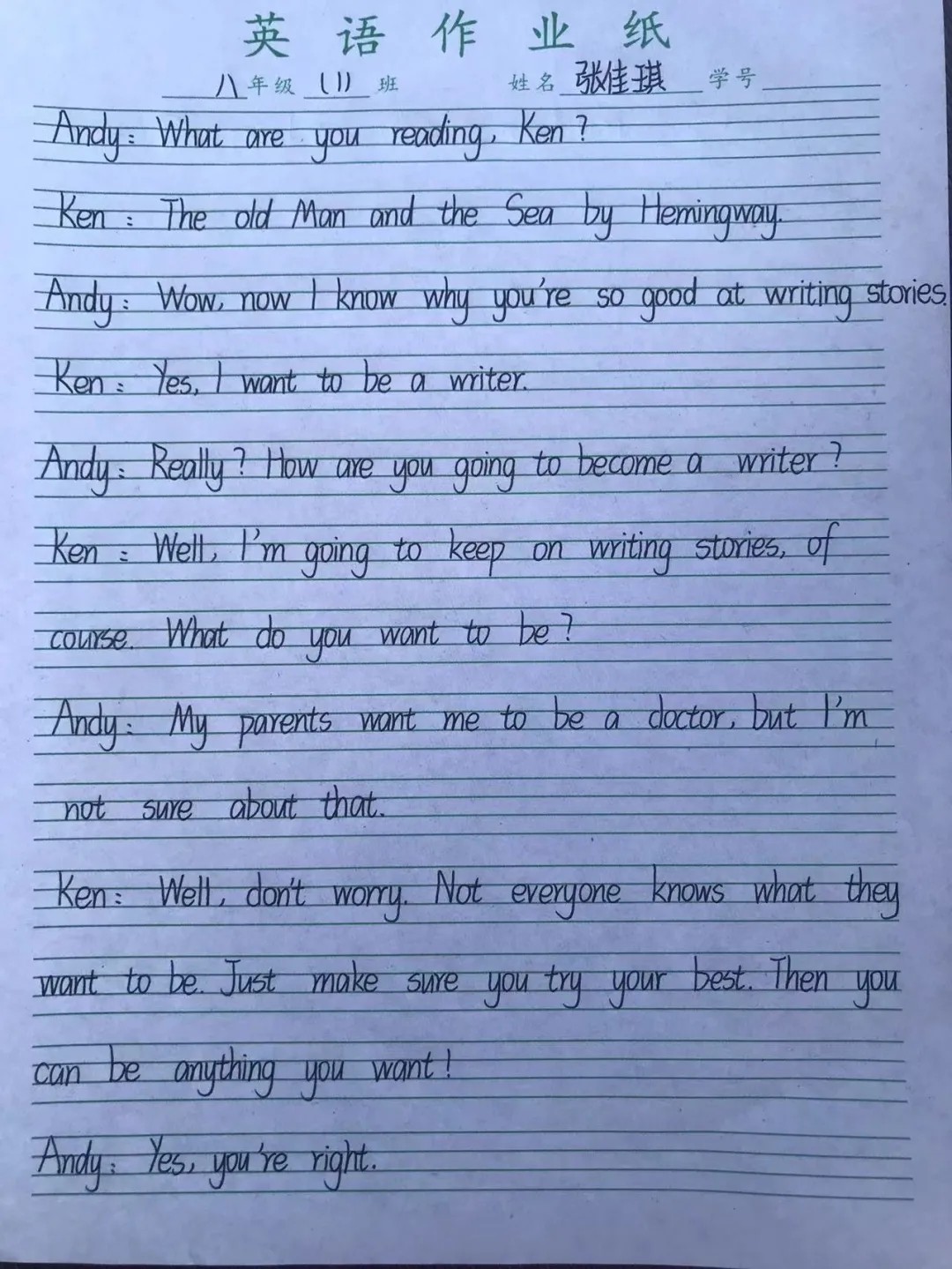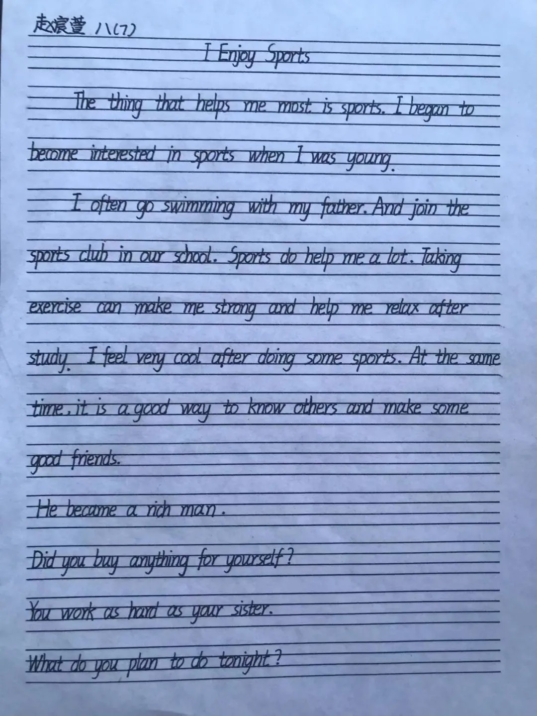 學(xué)生課堂古人云:“起初是我們?cè)斐闪?xí)慣,后來(lái)是習(xí)慣造成我們?!傲己玫臅鴮懥?xí)慣不僅反映了一個(gè)人端正的學(xué)習(xí)態(tài)度,更是一種良好的學(xué)習(xí)習(xí)慣。”好的字跡不僅讓人賞心悅目,還可以增強(qiáng)個(gè)人修養(yǎng)和審美情趣。書寫是初中英語(yǔ)學(xué)習(xí)的一項(xiàng)重要內(nèi)容。