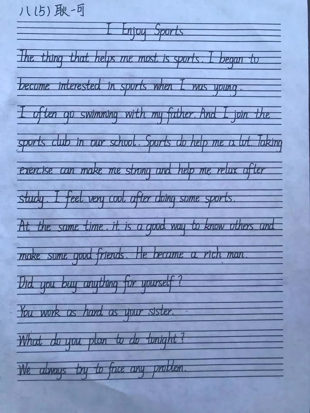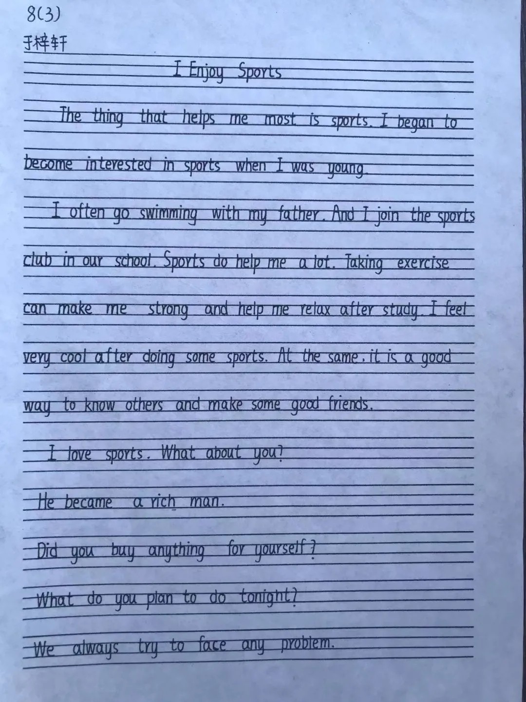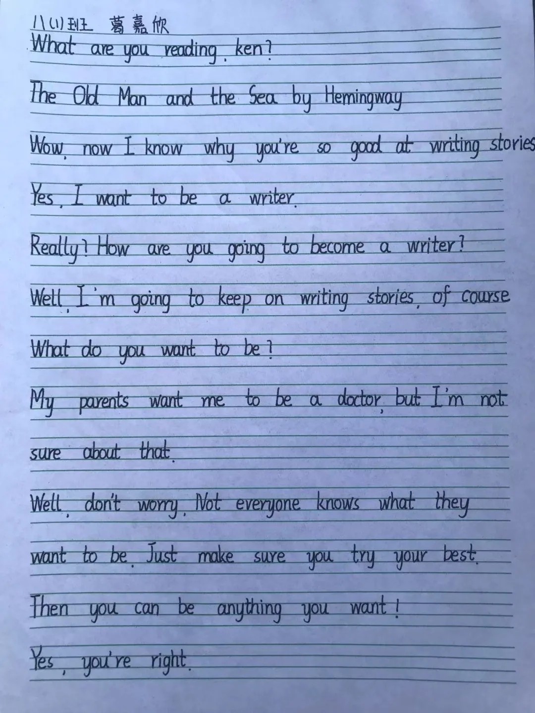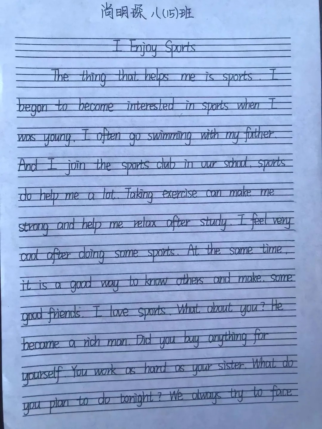 學(xué)生課堂古人云:“起初是我們?cè)斐闪?xí)慣,后來(lái)是習(xí)慣造成我們?!傲己玫臅鴮懥?xí)慣不僅反映了一個(gè)人端正的學(xué)習(xí)態(tài)度,更是一種良好的學(xué)習(xí)習(xí)慣。”好的字跡不僅讓人賞心悅目,還可以增強(qiáng)個(gè)人修養(yǎng)和審美情趣。書寫是初中英語(yǔ)學(xué)習(xí)的一項(xiàng)重要內(nèi)容。