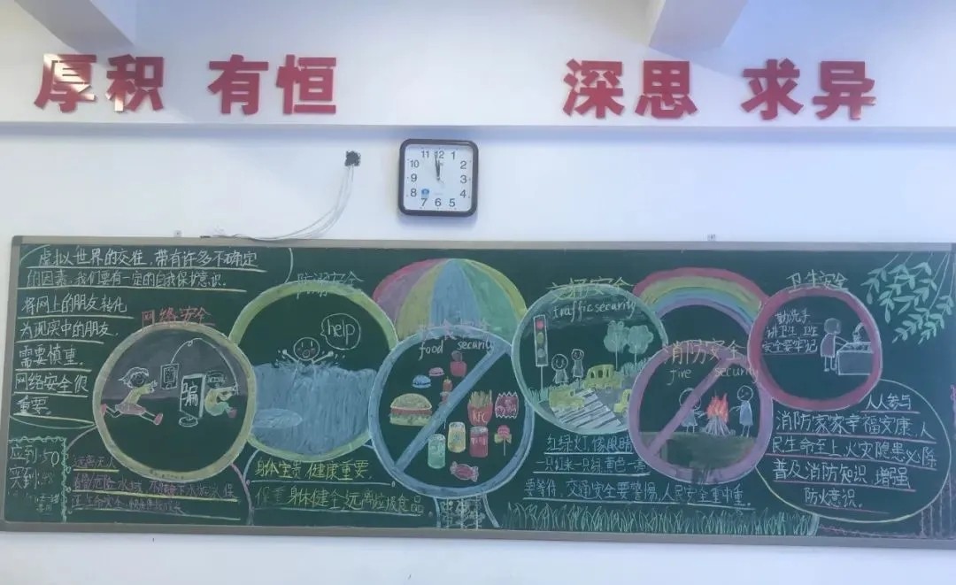 校園安全直接關(guān)系到青少年學(xué)生安全、健康地成長,關(guān)系到每個(gè)家庭的幸福和社會(huì)穩(wěn)定。保護(hù)好每一個(gè)孩子,讓各種意外事故降到*低限度,已成為我校安全教育和管理的重要內(nèi)容。各班板報(bào)內(nèi)容豐富多彩、圖文并茂、主題鮮明。